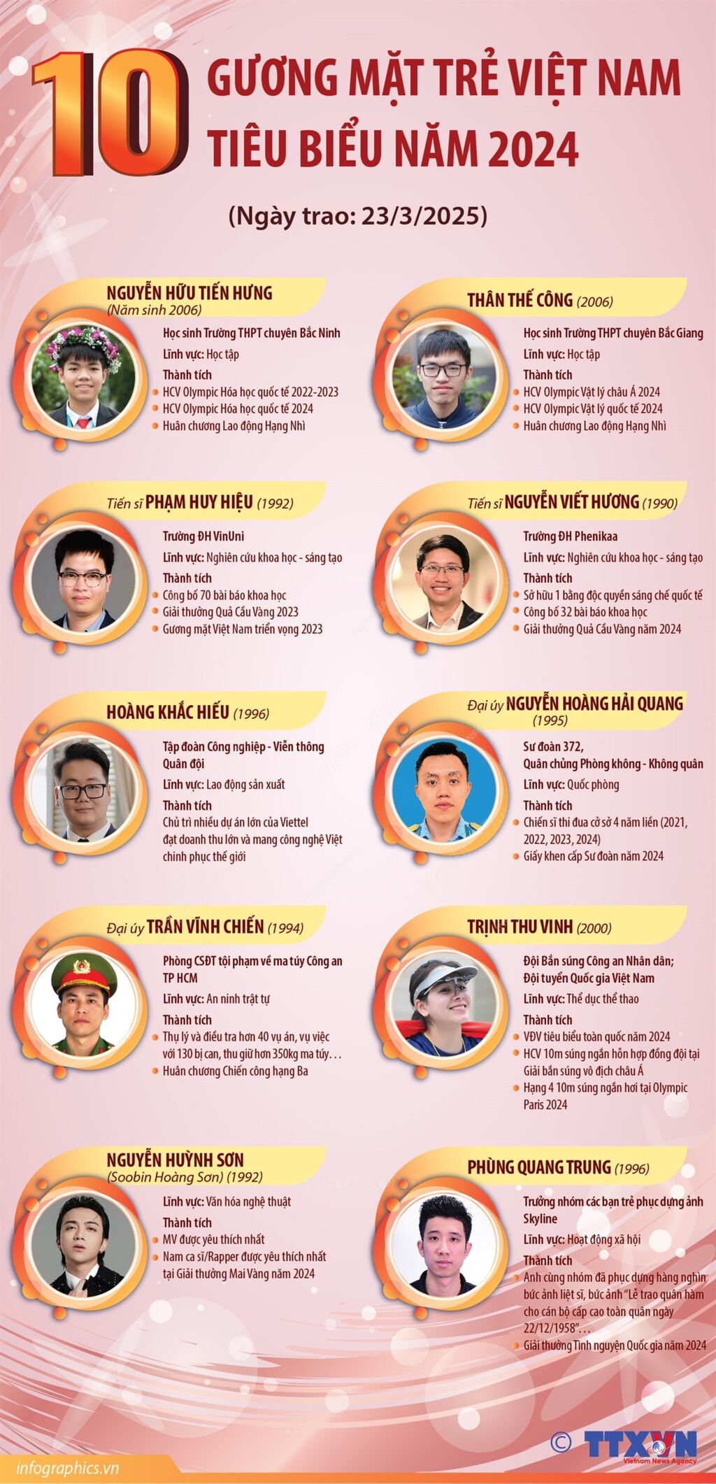 | 10 Gương mặt trẻ Việt Nam tiêu biểu năm 2024 |