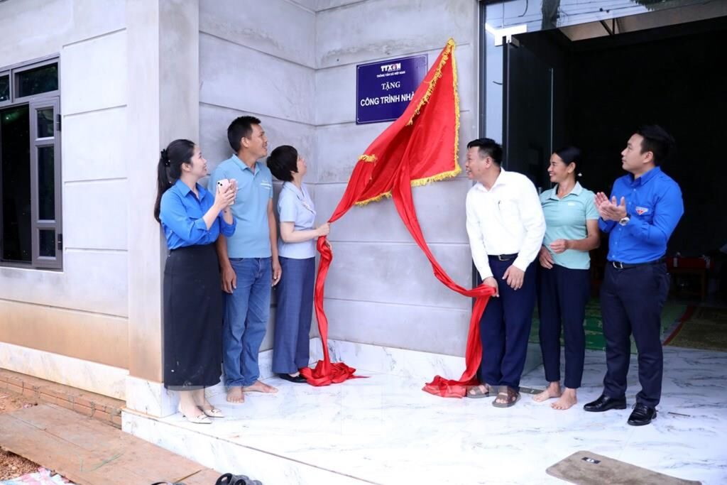 | Tổng Giám đốc TTXVN Vũ Việt Trang khánh thành ngôi nhà mới do TTXVN hỗ trợ kinh phí xây dựng. |