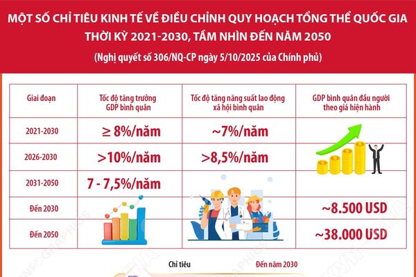 Theo Điều chỉnh Quy hoạch tổng thể quốc gia thời kỳ 2021-2030, tầm nhìn đến năm 2050, Việt Nam phấn đấu đến năm 2030 là nước đang phát triển có công nghiệp hiện đại, thu nhập trung bình cao; xác lập mô hình tăng trưởng mới, lấy khoa học công nghệ, đổi mới sáng tạo và chuyển đổi số làm động lực chính; mô hình tổ chức không gian phát triển quốc gia hiệu quả, thống nhất, bền vững, các vùng động lực, hành lang kinh tế, cực tăng trưởng phát huy vai trò đi đầu, dẫn dắt trong phát triển kinh tế-xã hội và nâng cao năng lực cạnh tranh quốc gia; có mạng lưới kết cấu hạ tầng cơ bản đồng bộ, hiện đại; bảo đảm các cân đối lớn, nâng cao khả năng chống chịu của nền kinh tế; bảo đảm an ninh năng lượng, an ninh lương thực và an ninh nguồn nước; môi trường sinh thái được bảo vệ, thích ứng với biến đổi khí hậu; phát triển toàn diện nguồn nhân lực, đời sống vật chất, tinh thần của Nhân dân được nâng cao; quốc phòng, an ninh được bảo đảm; vị thế, uy tín của Việt Nam trên trường quốc tế được nâng lên …