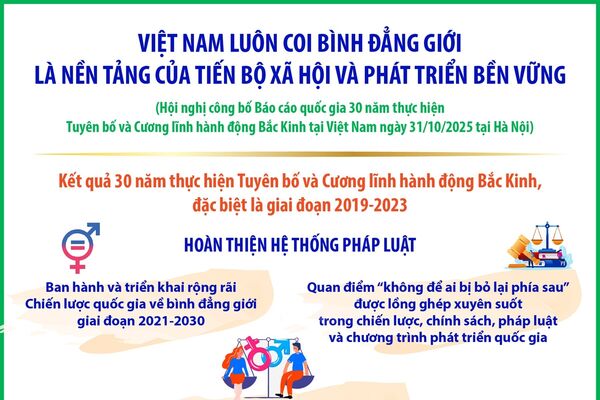 Ngày 31/10/2025, Bộ Nội vụ chủ trì, phối hợp với Cơ quan Liên Hợp quốc về Bình đẳng giới và Trao quyền cho phụ nữ (UN Women) tại Việt Nam tổ chức Hội nghị công bố Báo cáo quốc gia về 30 năm thực hiện Tuyên bố và Cương lĩnh Hành động Bắc Kinh tại Việt Nam. Sự kiện này đánh dấu một cột mốc quan trọng trong hành trình ba thập kỷ nỗ lực vì bình đẳng giới và trao quyền cho phụ nữ, thể hiện rõ cam kết chính trị nhất quán của Việt Nam đối với các mục tiêu phát triển bền vững của Liên Hợp Quốc.