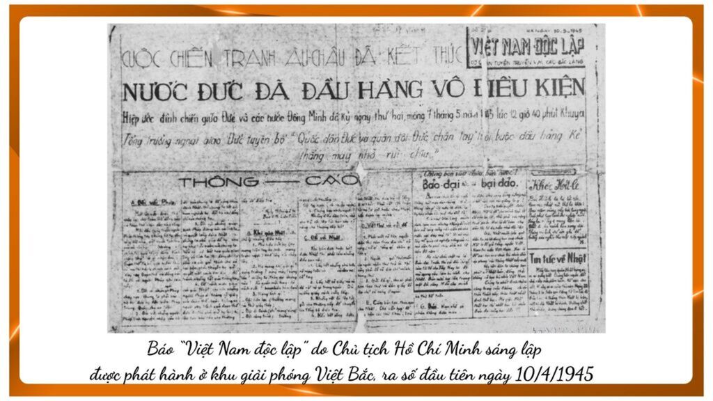 Báo chí cách mạng đã hoàn thành xuất sắc sứ mệnh giác ngộ chính trị, tư tưởng, tổ chức và huấn luyện lực lượng, hình thành sức mạnh tổng hợp làm nên cuộc Tổng khởi nghĩa Tháng Tám năm 1945 vĩ đại, lập nên nước Việt Nam Dân chủ Cộng hòa, Nhà nước dân chủ, nhân dân đầu tiên ở Đông Nam châu Á.