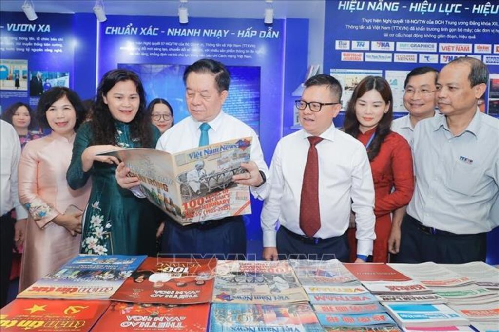 | Đồng chí Nguyễn Trọng Nghĩa, Ủy viên Bộ Chính trị, Bí thư Trung ương Đảng, Trưởng Ban Tuyên giáo và Dân vận Trung ương tham quan gian trưng bày của TTXVN tại Hội Báo toàn quốc năm 2025. |