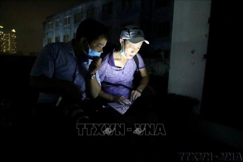 | Không ngại khó khăn, nguy hiểm, các phóng viên luôn có mặt kịp thời tại những điểm nóng để đảm bảo thông tin đến nhanh nhất với độc giả. Trong ảnh: Các phóng viên ảnh tác nghiệp và gửi ảnh ngay tại hiện trường vụ cháy ở Công ty Cổ phần bóng đèn phích nước Rạng Đông đêm 28/8/2019. |