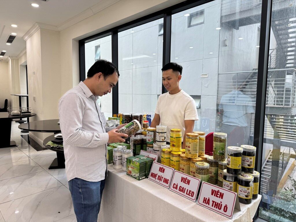 | Khách hàng trải nghiệm sản phẩm nông sản Việt tìm cơ hội xuất khẩu sang Trung Quốc. |