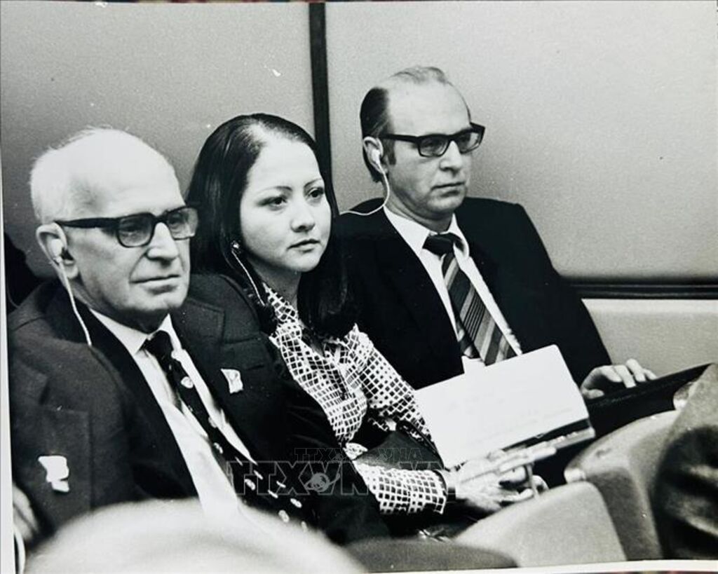 | Bà Elizabeth Tortosa, Phu nhân của Tổng Bí thư Đảng Cộng sản Venezuela Jesús Faría Tortosa tham dự một hội nghị quốc tế. Bà đã có dịp gặp Chủ tịch Hồ Chí Minh tại Hà Nội năm 1965. Ảnh: Gia đình nhân vật cung cấp/TTXVN phát |