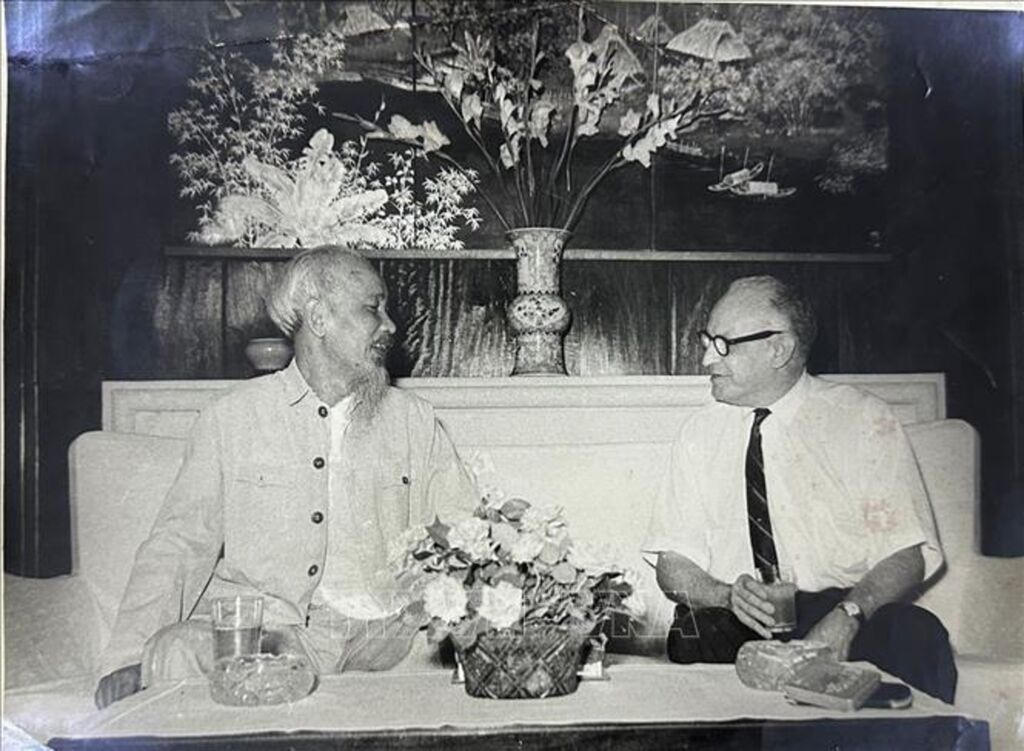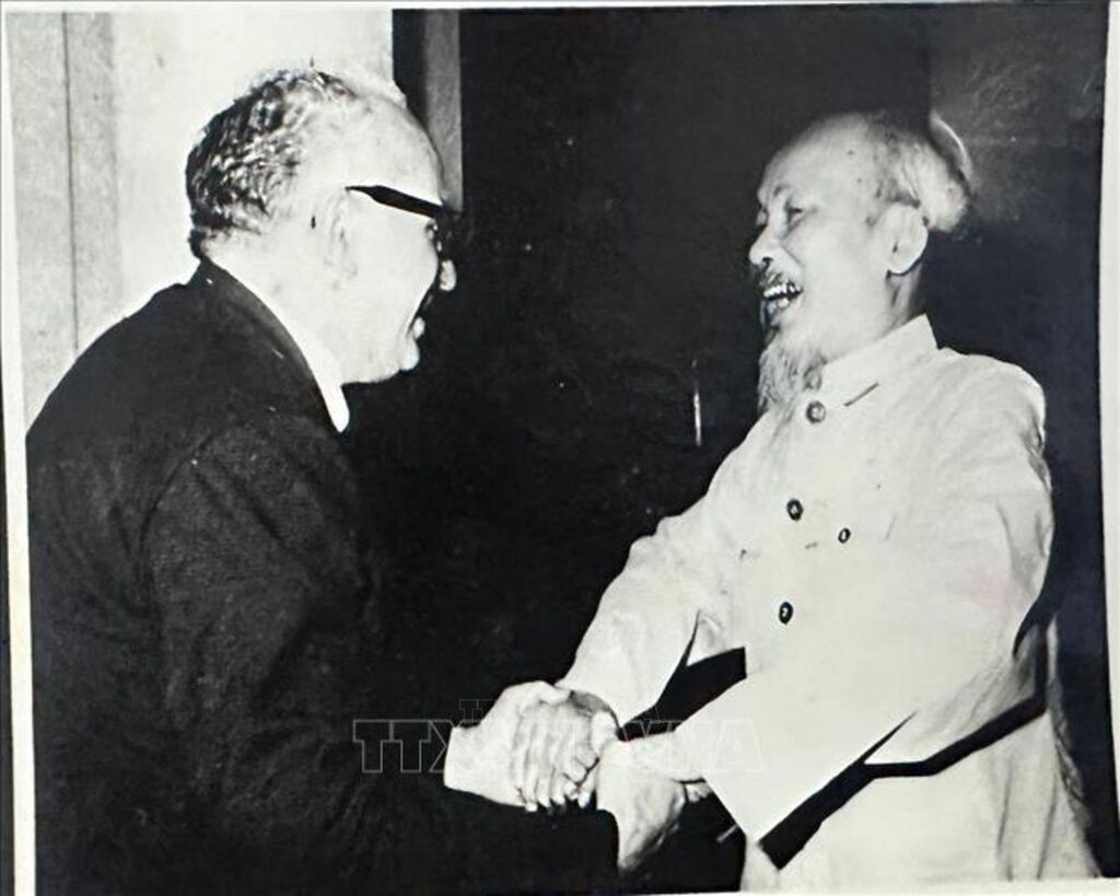 | Ủy viên Bộ Chính trị Đảng Cộng sản Venezuela (PCV) Eduardo Gallegos trong một lần gặp Chủ tịch Hồ Chí Minh tại Thủ đô Hà Nội, tháng 9/1964. Ảnh: Gia đình nhân vật cung cấp/TTXVN phát |