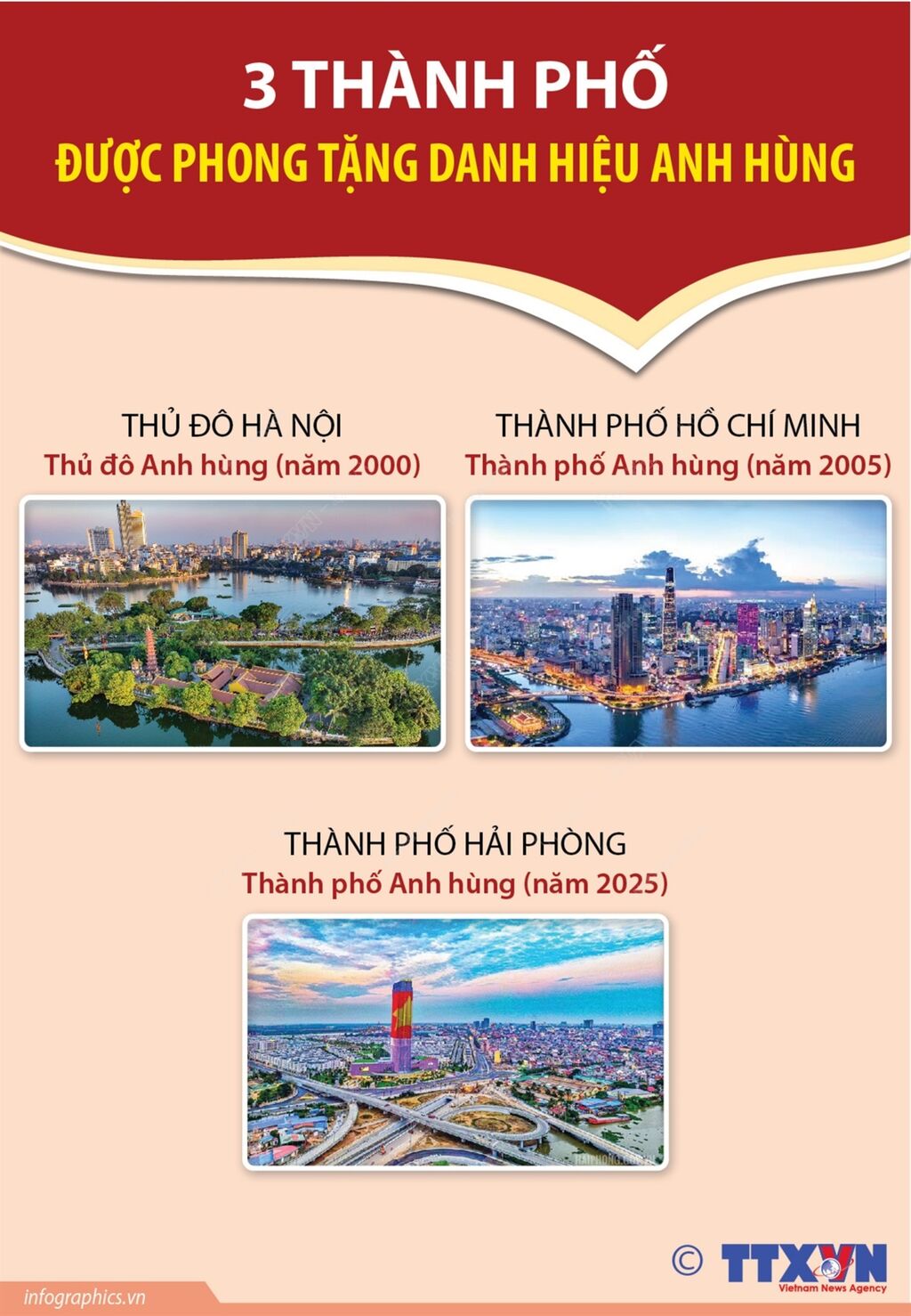 | 3 thành phố được phong tặng danh hiệu Anh hùng |