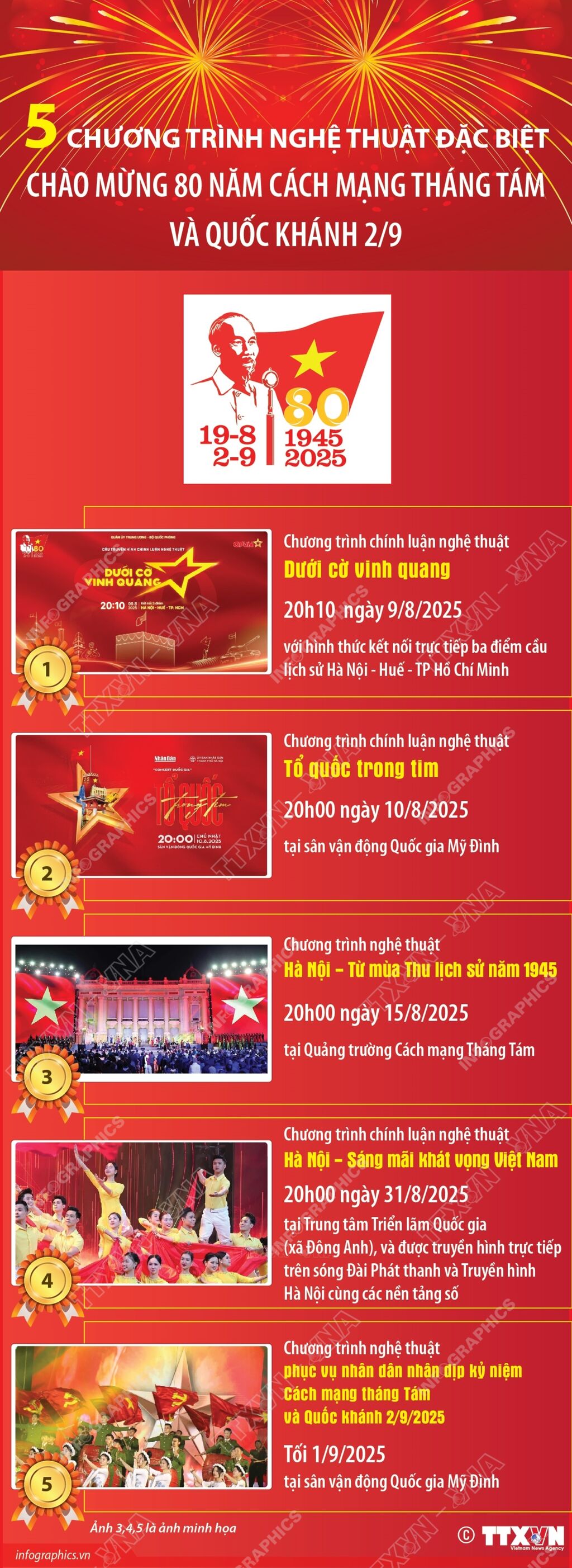 5 chương trình nghệ thuật đặc biệt chào mừng 80 năm Cách mạng tháng Tám và Quốc khánh 2/9