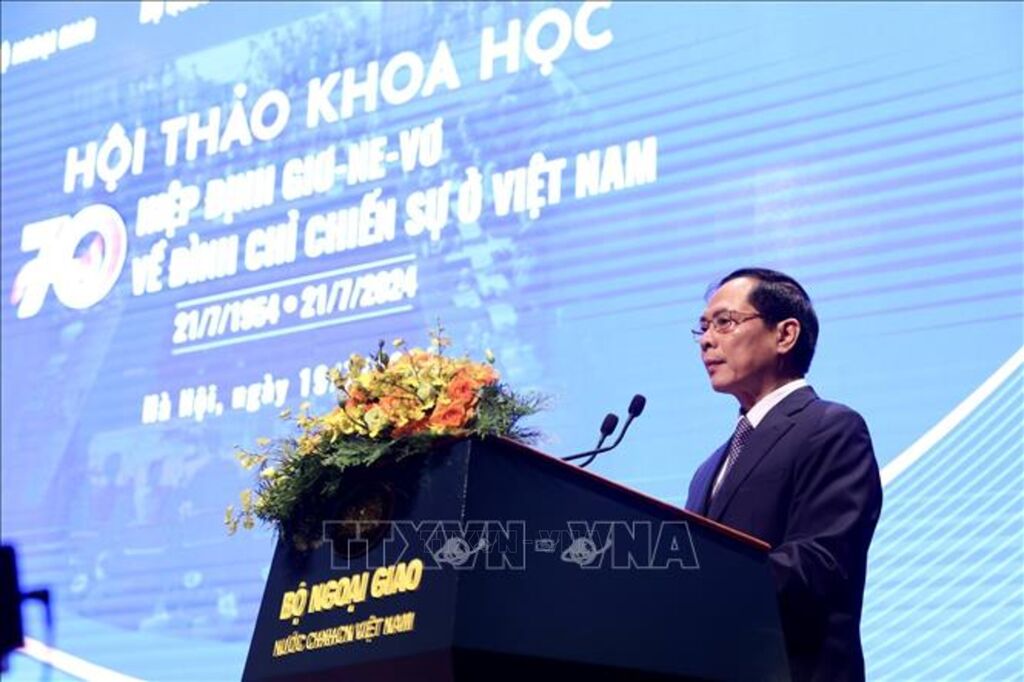 Trong phát biểu nhân dịp kỷ niệm 70 năm Hiệp định Geneva lịch sử, Bộ trưởng Ngoại giao Bùi Thanh Sơn khẳng định: Việt Nam đã học được nhiều kinh nghiệm mà đầu tiên phải kể đến là bài học về kết hợp sức mạnh dân tộc với sức mạnh thời đại, đoàn kết dân tộc gắn kết với đoàn kết quốc tế để tạo nên "một sức mạnh vô địch".