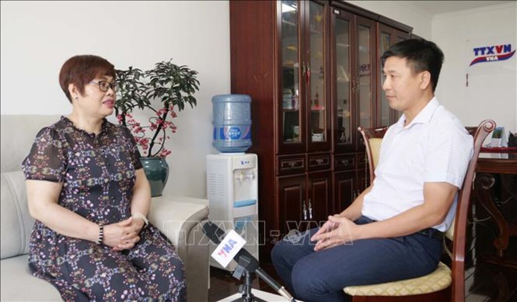| Giáo sư, Tiến sĩ Phan Kim Nga, Viện nghiên cứu Chủ nghĩa Marx thuộc Viện Khoa học Xã hội Trung Quốc, chuyên gia về các vấn đề Việt Nam trả lời phỏng vấn phóng viên TTXVN tại Bắc Kinh. Ảnh: Quang Hưng-PV TTXVN tại Trung Quốc |