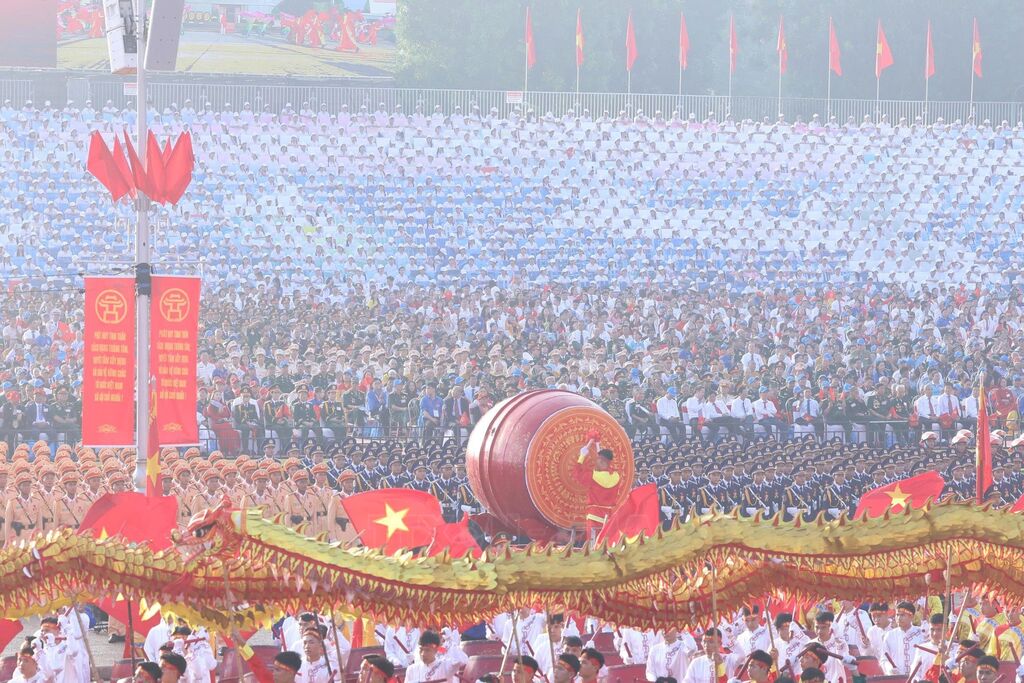 5 giờ 30 phút, Quảng trường Ba Đình rực rỡ sắc cờ hoa và niềm hân hoan chờ đợi. Chỉ ít phút nữa, những khẩu lệnh sẽ rền vang, các đội hình sẽ chỉnh tề tiến qua lễ đài. Khắp các phố Tràng Tiền, Tràng Thi, Trần Phú, Cửa Nam… , lớp lớp người đang đứng kín vỉa hè, tay cầm quốc kỳ, mắt hướng về những màn hình LED cỡ lớn tại các địa điểm công cộng để đón đợi sự kiện trọng đại. Sự chờ đợi sẽ dâng thành cao trào khi “máu đỏ da vàng, tôi là người Việt Nam”, cả biển người cùng đặt tay lên ngực trái để hát Quốc ca, rồi dõi theo những bước chân của các lực lượng vũ trang nhân dân Việt Nam và quân đội bạn bè quốc tế. Không khí lễ hội hòa cùng kỷ luật quân ngũ khiến phố phường vừa náo nức vừa nghiêm trang, đúng tinh thần ngày Quốc khánh tròn 80 năm. Trong niềm vui ấy, những gương mặt cựu chiến binh đang lặng lẽ dõi theo tuổi trẻ, dõi theo sự kiện trọng đại của dân tộc, lắng đọng ký ức về máu xương đã đổ xuống. Tất cả tạo nên một chiều sâu lắng đọng. Vì sau bao nhiêu năm mới có ngày hòa bình. Sau ngày vui chiến thắng là hàng triệu cái tên đã mãi mãi nằm lại để “đem thanh xuân gieo tự do cho đất nước”.