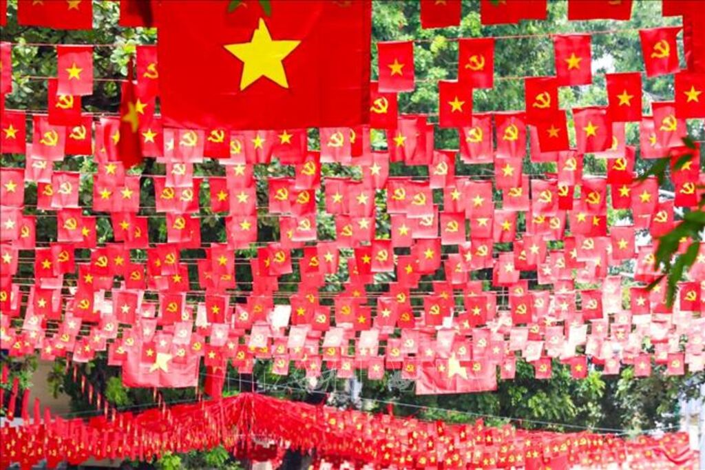 | Sắc đỏ cờ Tổ quốc ngập tràn phố Hàng Mã, phường Hoàn Kiếm, Hà Nội. Ảnh: Khánh Hoà/TTXVN |