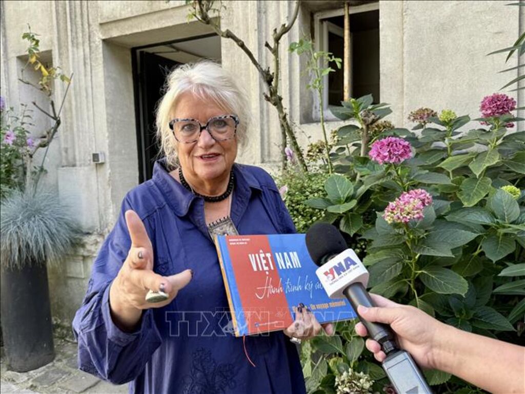 | Tiến sĩ Hoàng Thị Hồng Hà, nhà nghiên cứu văn hóa Việt Nam đồng tác giả cuốn sách ảnh đề "Việt Nam - Hành trình ký ức" (Vietnam - Un voyage mémoriel). Ảnh: Thu Hà - P/v TTXVN tại Pháp |