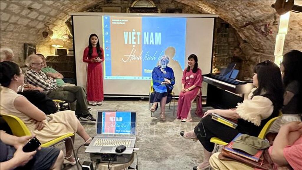 Buổi lễ ra mắt sách diễn ra trong bầu không khí ấm cúng và trang trọng, với sự tham gia của đông đảo bà con kiều bào, bạn bè quốc tế, nghệ sĩ, nhà nghiên cứu và những người yêu mến văn hóa Việt Nam. Điểm nhấn đặc biệt của buổi lễ là màn trình diễn bản nhạc "Tiến quân ca"- Quốc ca Việt Nam, do nghệ sĩ piano Anna Kavalerova trình diễn, tạo nên không khí trang nghiêm và xúc động, thể hiện lòng tôn kính đối với những giá trị thiêng liêng của dân tộc.