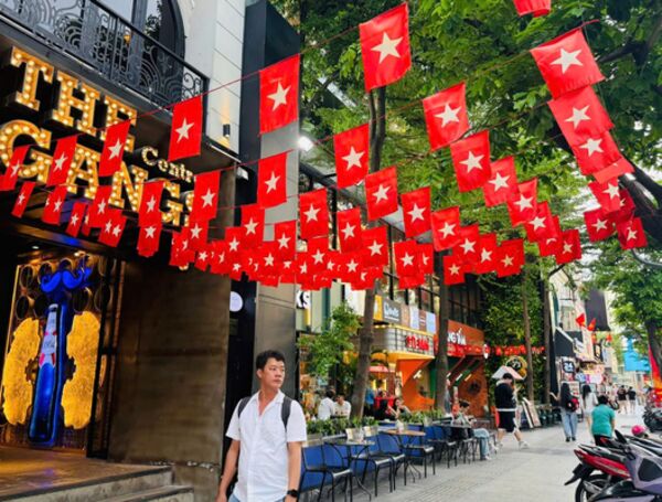 | Trong những ngày gần đến đại lễ, nhiều người dân Hà Nội xuống đường chụp ảnh với hình ảnh lá cờ Tổ quốc để thể hiện tình yêu nước và niềm tự hào dân tộc. Ảnh minh họa: Khánh Hoà/TTXVN |