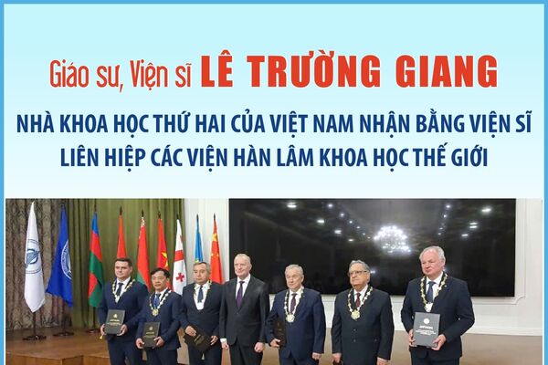 Giáo sư, Viện sĩ Lê Trường Giang - Phó Chủ tịch Viện Hàn lâm Khoa học và Công nghệ Việt Nam (VAST) đã được trao bằng và biểu trưng Viện sĩ Liên hiệp Các viện hàn lâm khoa học thế giới (IAAS) trong khuôn khổ Phiên họp lần thứ 38 của IAAS diễn ra từ ngày 17 - 19/9/2025 tại Belarus. Danh hiệu Viện sĩ IAAS là sự ghi nhận cao quý, chỉ dành cho số ít nhà khoa học xuất sắc có vai trò dẫn dắt và tầm ảnh hưởng lớn trong cộng đồng khoa học quốc tế. Với việc Giáo sư, Viện sĩ Lê Trường Giang được vinh danh, Việt Nam hiện có 2 nhà khoa học được trao danh hiệu này (Giáo sư, Viện sĩ Châu Văn Minh, Chủ tịch VAST được bầu chọn năm 2019). Đây không chỉ là vinh dự của cá nhân nhà khoa học mà còn là minh chứng cho sự trưởng thành và hội nhập quốc tế ngày càng sâu rộng của nền khoa học Việt Nam trên trường quốc tế.