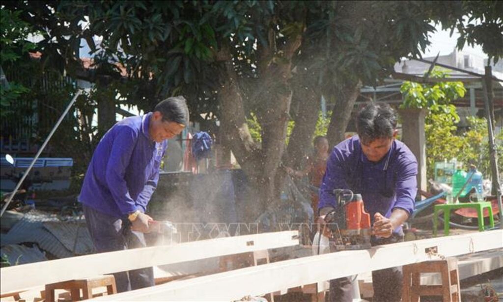 | Nhóm Thiện nguyện huyện Lai Vung, tỉnh Đồng Tháp xây dựng nhà miễn phí cho hộ dân trong Chương trình xóa nhà tạm, nhà dột nát. |