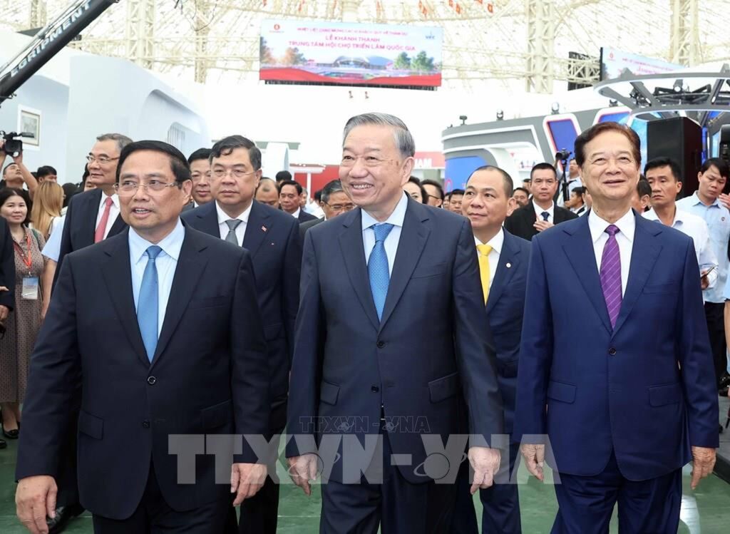 | Sáng 19/8/2025, Tổng Bí thư Tô Lâm và Thủ tướng Phạm Minh Chính dự và chủ trì Lễ khánh thành, khởi công các dự án, công trình chào mừng kỷ niệm 80 năm Quốc khánh nước Cộng hòa Xã hội chủ nghĩa Việt Nam (2/9/1945 – 2/9/2025) tại Trung tâm Triển lãm Việt Nam (xã Đông Anh, thành phố Hà Nội). Ảnh: TTXVN |