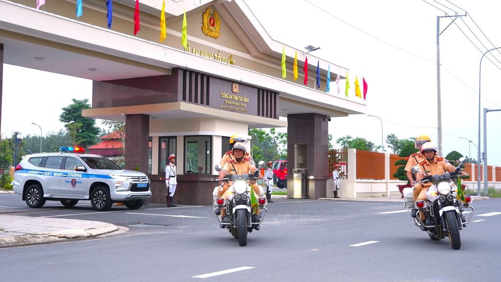 | Cảnh sát giao thông Công an tỉnh Tây Ninh ra quân tuần tra, kiểm soát đảm bảo trật tự an toàn giao thông. |