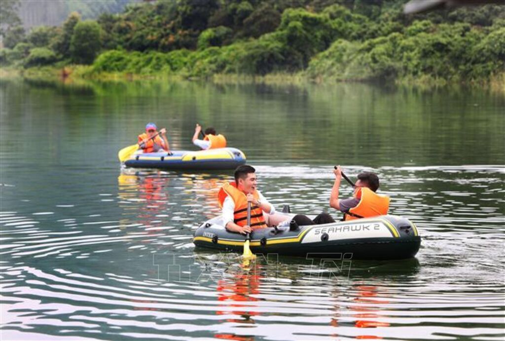 | Du khách chèo thuyền ở hồ Cấm Sơn (Lục Ngạn, Bắc Giang). |