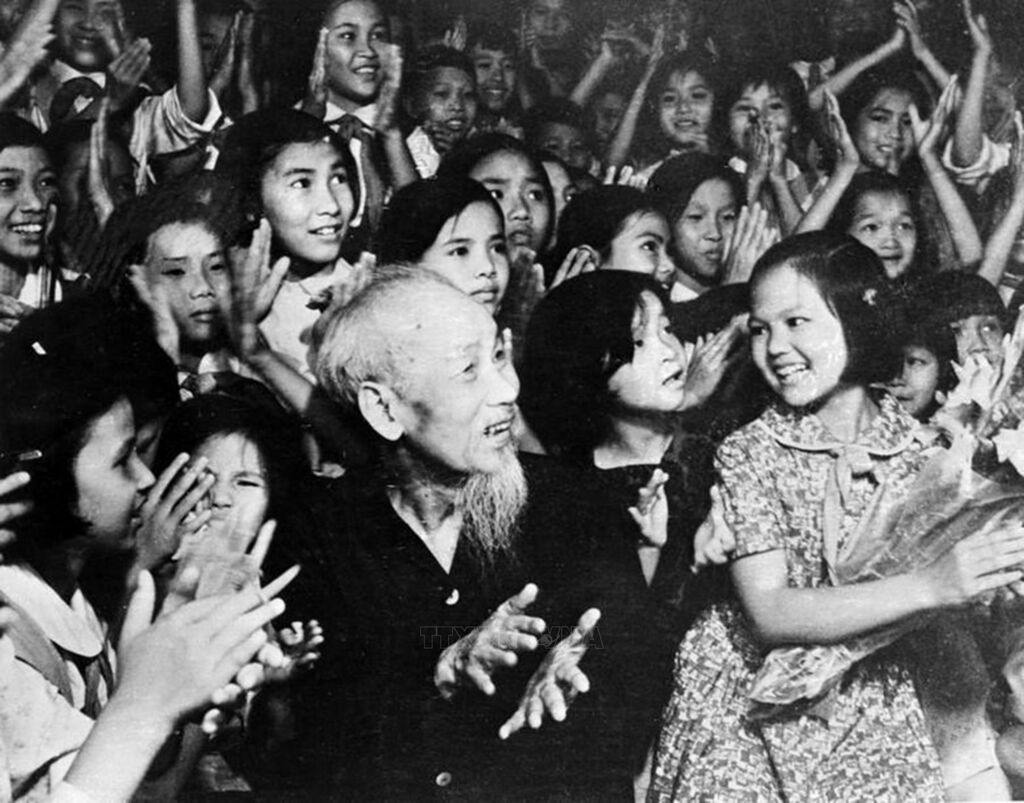Sinh thời, dù luôn bận bịu việc nước, Chủ tịch Hồ Chí Minh luôn dành nhiều thời gian quan tâm đến thiếu niên, nhi đồng - những chủ nhân tương lai của đất nước. Trước lúc đi xa, trong bản Di chúc thiêng liêng, Bác gửi muôn vàn tình yêu thương cho dân tộc Việt Nam, trong đó Người không quên nhắc đến thế hệ thiếu niên, nhi đồng bằng những tình cảm đặc biệt. Tấm lòng yêu thương và những lời căn dặn, hành động, tình cảm của Bác sẽ mãi mãi khắc sâu trong tâm trí thiếu niên, nhi đồng nói riêng và mỗi người dân Việt nói chung. Ảnh: TTXVN