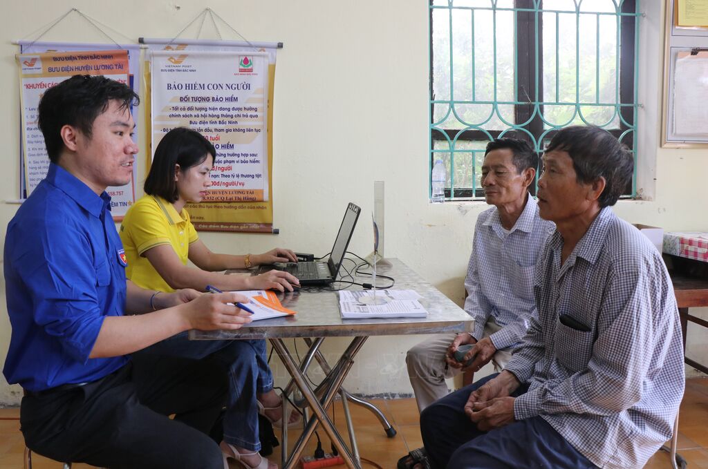 | Hướng dẫn người dân tại xã Minh Tân (Lương Tài, Bắc Ninh) làm thủ tục để nhận lương hưu, trợ cấp bảo hiểm xã hội không dùng tiền mặt. |