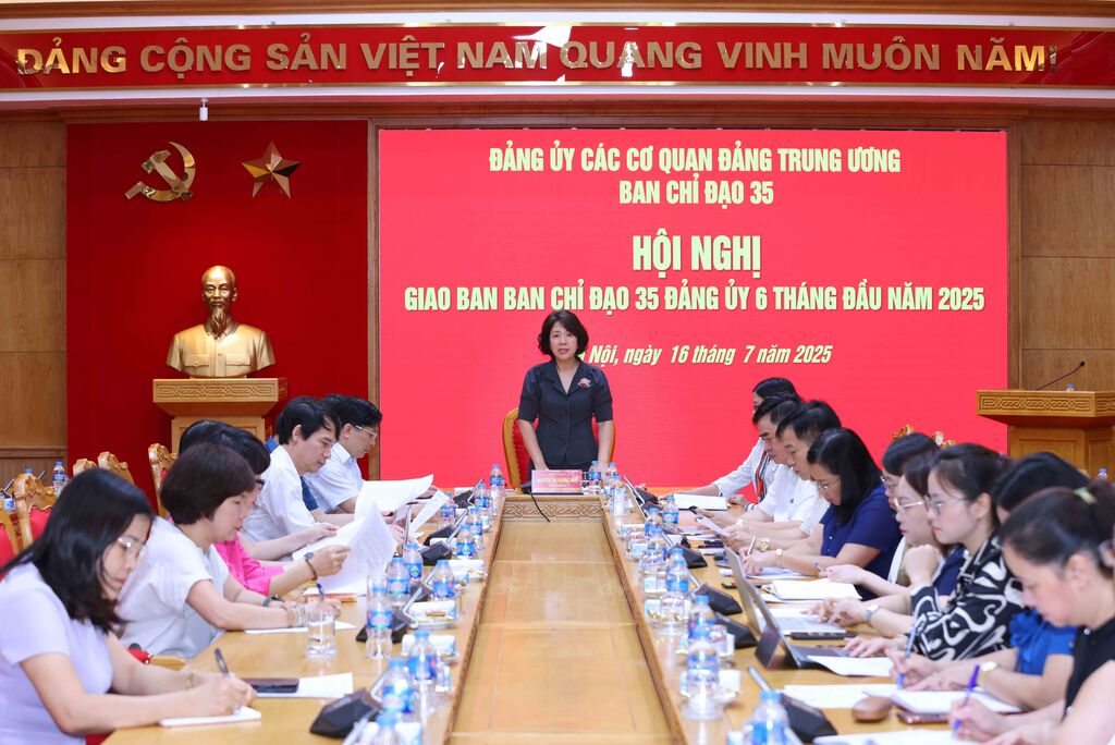 | Quang cảnh hội nghị giao ban 6 tháng đầu năm 2025 Ban Chỉ đạo 35 Đảng uỷ các cơ quan Đảng Trung ương. |