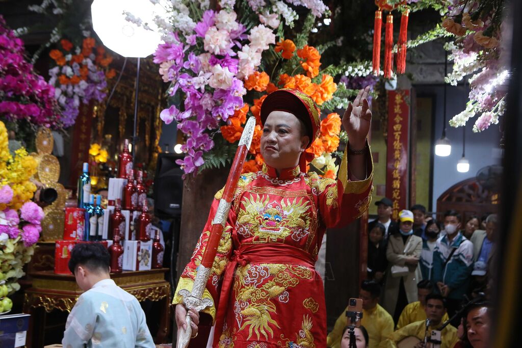 | Thực hành, biểu diễn hầu đồng tại Phủ Tiên Hương, thuộc Khu di tích lịch sử, văn hóa Phủ Dầy (Nam Định). |