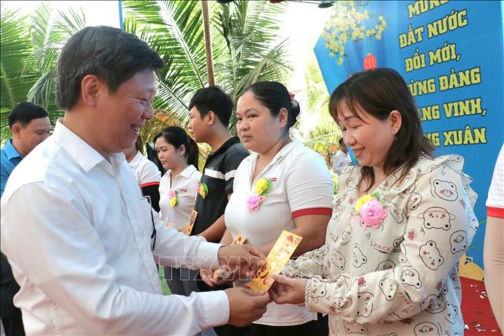 | Lãnh đạo tỉnh Bến Tre tặng quà và động viên đoàn viên, người lao động có hoàn cảnh khó khăn trong dịp đầu năm mới 2025. |