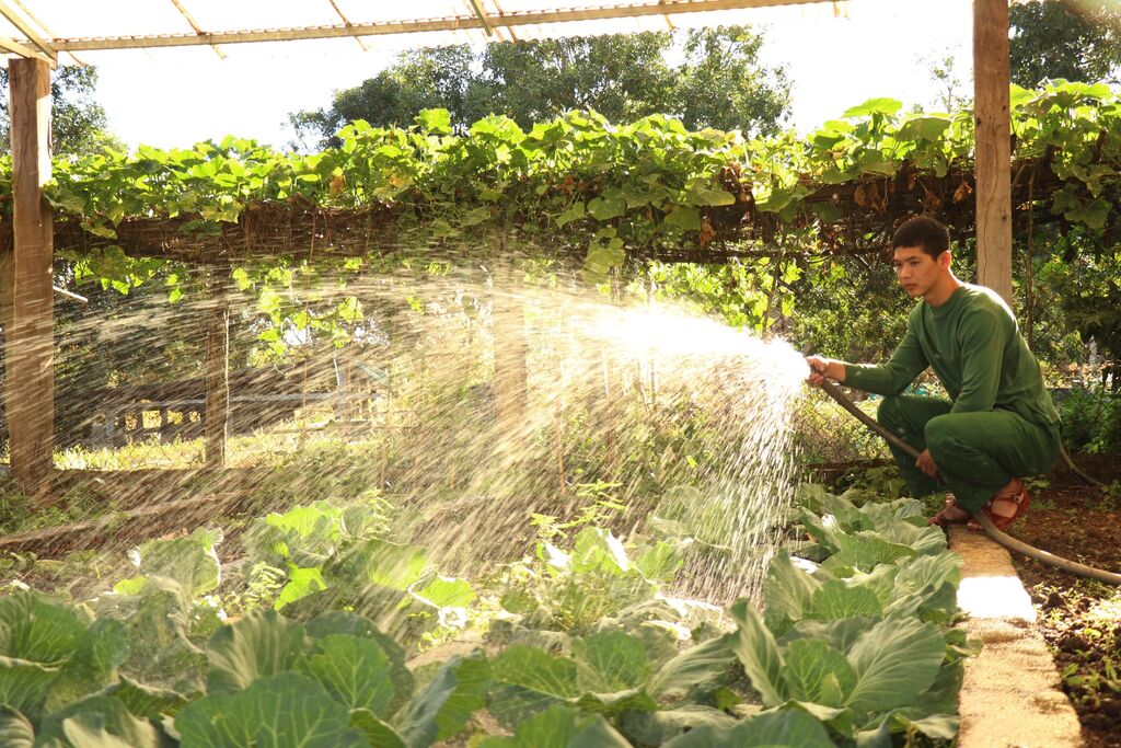 | Chiến sĩ Đồn Biên phòng Bo Heng, Bộ đội Biên phòng tỉnh Đắk Lắk, chăm sóc vườn rau phục vụ nhu cầu thực phẩm trong dịp Tết Nguyên đán Ất Tỵ 2025. |
