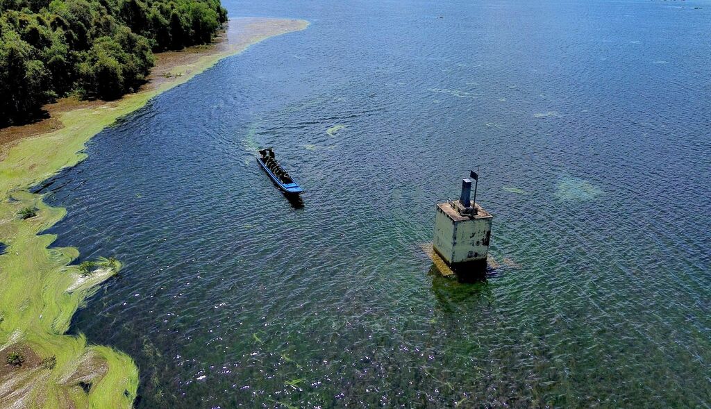 Nam - Campuchia thuộc địa phận tỉnh Long An bị ngập trong nước. Tuy nhiên, cán