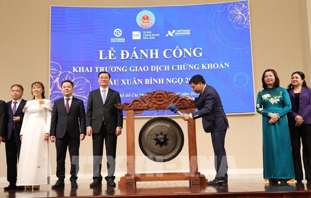 Chính vì vậy, theo Bộ trưởng Nguyễn Văn Thắng, nghi thức đánh cồng đầu xuân không chỉ mang ý nghĩa truyền thống khai mở một năm giao dịch mới, mà còn là thông điệp thể hiện quyết tâm xây dựng thị trường chứng khoán Việt Nam phát triển bền vững, cùng đất nước bước vào giai đoạn phát triển mới, với mục tiêu tăng trưởng kinh tế nhanh và bền vững.