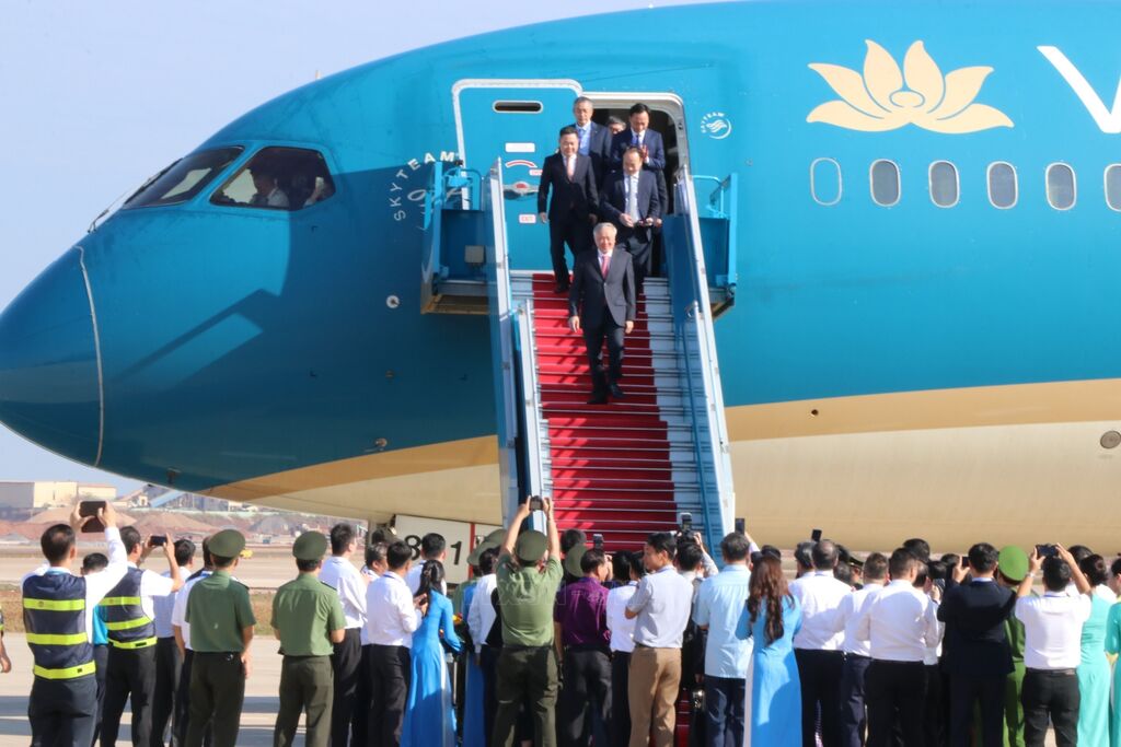| Phó Thủ tướng Thường trực Nguyễn Hòa Bình trên chuyến bay Boeing 787 của Hãng hàng không quốc tế Việt Nam (VietnamAirliners) hạ cánh xuống sây bay Long Thành (Đồng Nai). |