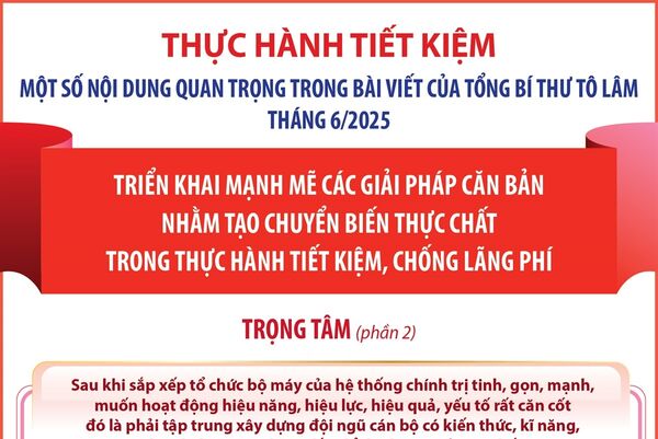 Nói về “bộ tứ Nghị quyết” của Bộ Chính trị để giúp Việt Nam bước vào kỷ nguyên mới, Tổng Bí thư Tô Lâm nhấn mạnh: Các chương trình hành động phải được triển khai quyết liệt, bài bản, lấy hiệu quả thực tế làm thước đo năng lực và kết quả công tác. Tiếp tục kiến nghị, đề xuất để xây dựng những nghị quyết mới theo phương châm "Bao nhiêu lợi ích đều vì dân. Bao nhiêu quyền hạn đều của dân" như Bác Hồ từng dạy.