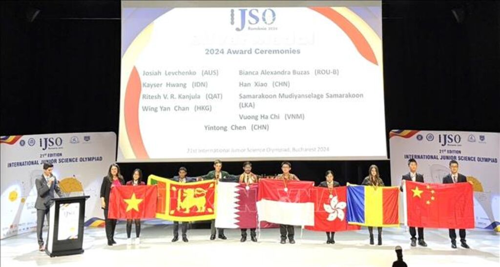 Olympic Khoa học trẻ quốc tế - IJSO năm 2024 được tổ chức tại Rumani từ ngày 2 - 12/12, với sự tham gia của hơn 300 học sinh đến từ 52 quốc gia, vùng lãnh thổ. Các thí sinh làm bài thi khoa học tự nhiên ở 3 môn Vật lý, Hóa học, Sinh học trong 240 phút. Mỗi môn, học sinh phải dự thi 3 bài gồm: Bài thi trắc nghiệm khách quan về kiến thức chung; bài thi lý thuyết với yêu cầu những kỹ năng tổng hợp, phân tích, tự chủ, giải quyết vấn đề, tính toán, khoa học, sự sáng tạo; bài thi thực hành với kỹ năng sử dụng các dụng cụ, máy móc hiện đại.