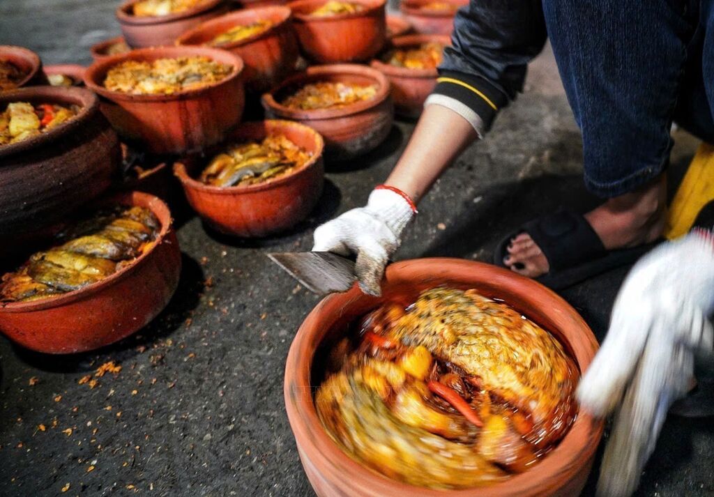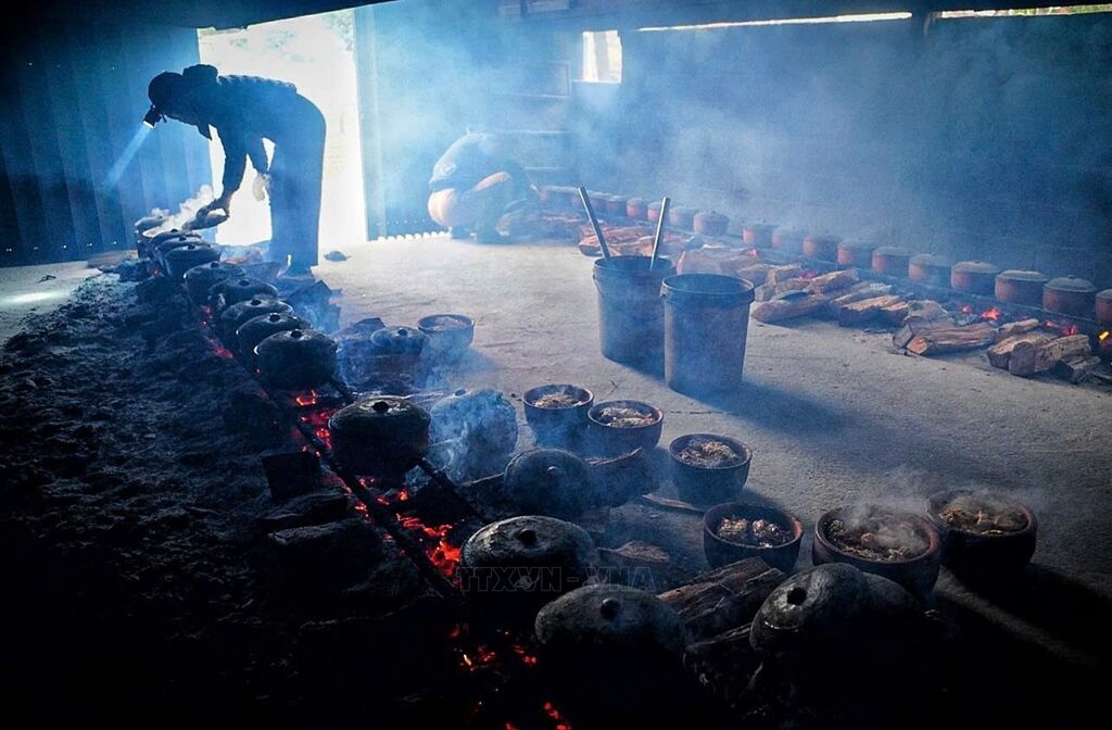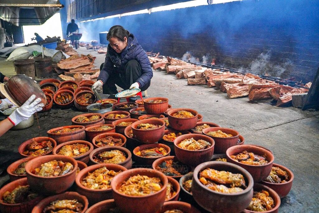 Củi để sử dụng kho cá phải là củi nhãn vì nhiệt lớn, than nhiều, lành tính, giúp nồi cá sôi đều trong nhiều giờ. Ảnh: Khánh Hòa - TTXVNCá kho trong niêu đất, trên bếp củi liên tục 10 - 20 tiếng, luôn có người trông không để cho cá bị cạn nước, cháy xém hay om khói. Ảnh: Khánh Hòa - TTXVNĐể đáp ứng nhu cầu của khách hàng trong và ngoài nước, cá kho làng Vũ Đại giờ đã được bán rộng rãi trên các nền tảng số. Ảnh: Khánh Hòa - TTXVNCơ sở của chị Trần Thu Hường (thương hiệu cá kho "Quê anh Chí") là đời thứ 3 kế thừa nghề làm cá kho của gia đình, mỗi ngày cung cấp cho thị trường khoảng 70 – 100 nồi. Ảnh: Khánh Hòa – TTXVNCá kho Vũ Đại đặc biệt hơn cá kho ở những nơi khác bởi nguyên liệu hoàn toàn từ tự nhiên, không chất bảo quản, thơm mà không tanh, ngậy mà không béo. Ảnh: Khánh Hòa - TTXVNCá kho trong niêu đất, trên bếp củi liên tục nhiều giờ và luôn có người trông đảm bảo cho cá không bị cạn nước, cháy xém hay om khói. Ảnh: Khánh Hòa - TTXVNGiữ lửa ổn định trong lúc kho là một khâu quan trọng để nồi cá kho đạt chất lượng cao nhất. Ảnh: Khánh Hòa - TTXVNCơ sở của chị Trần Thu Hường (thương hiệu cá kho "Quê anh Chí") là đời thứ 3 kế thừa nghề làm cá kho của gia đình, mỗi ngày cung cấp cho thị trường khoảng 70 – 100 nồi. Ảnh: Khánh Hòa – TTXVNCá trắm đen để kho phải nặng từ 5kg trở lên có thân dài, đầu to và nuôi trên 3 năm thì mới đạt chuẩn. Ảnh: Khánh Hòa - TTXVNSự nổi tiếng của cá kho làng Vũ Đại không chỉ là vị ngon của nồi cá mà còn là công sức của những người lao động đặt "cái tâm" vào nghề. Ảnh: Khánh Hòa - TTXVNNhiều khách hàng tìm đến tận cơ sở kho cá để mua. Ảnh: Khánh Hòa - TTXVNTrong quá trình kho, lửa luôn phải đảm bảo để niêu cá sôi mà không cạn nước. Ảnh: Khánh Hòa - TTXVNCá kho Vũ Đại đặc biệt hơn cá kho ở những nơi khác bởi nguyên liệu kho hoàn toàn từ tự nhiên, không chất bảo quản, thơm mà không tanh, ngậy mà không béo. Ảnh: Khánh Hòa - TTXVN