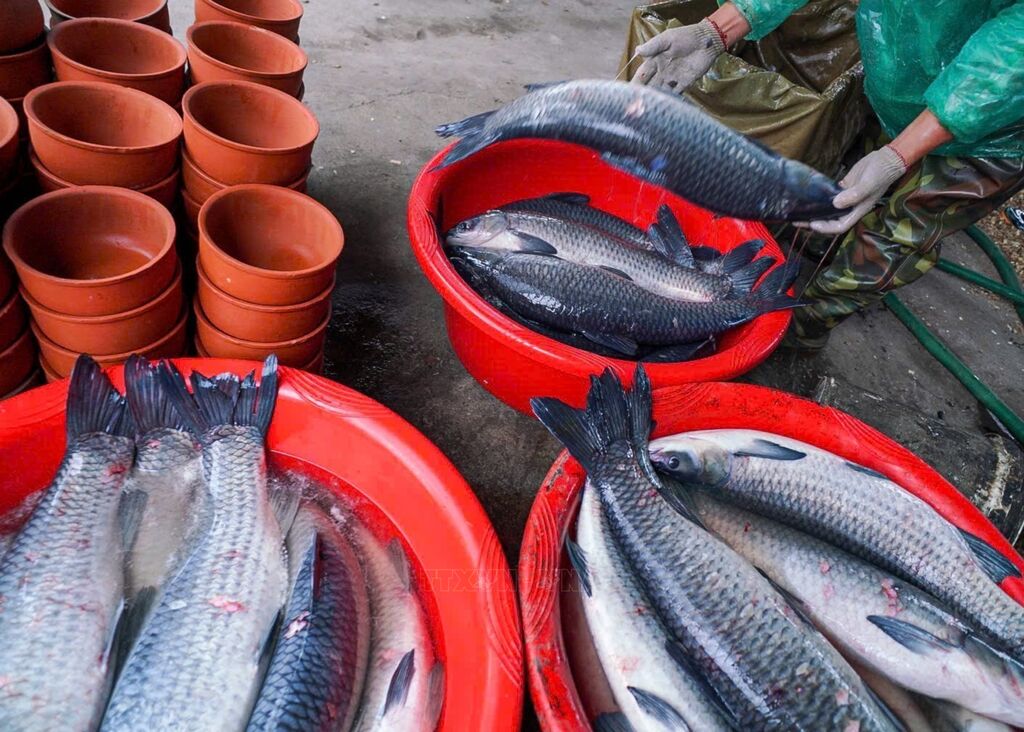 Mỗi dịp Tết cổ truyền, các gia đình làm nghề kho cá ở làng Vũ Đại (xã Hòa