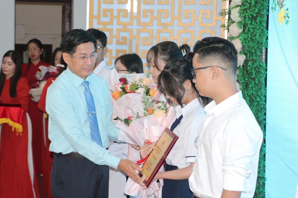 | Ông Tạ Trung Dũng, Trưởng Ban Tuyên giáo Tỉnh ủy Bạc Liêu, trao bằng vinh danh các cá nhân đạt thành tích cao. |