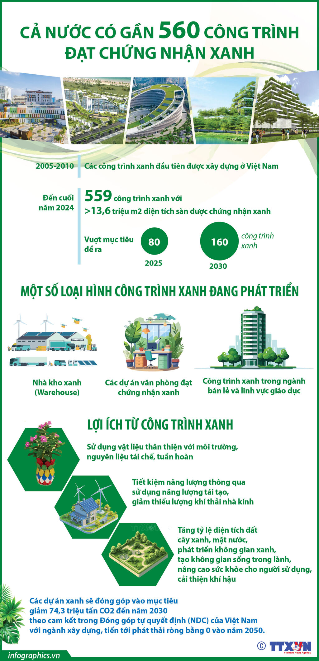 | Cả nước có gần 560 công trình đạt chứng nhận xanh |