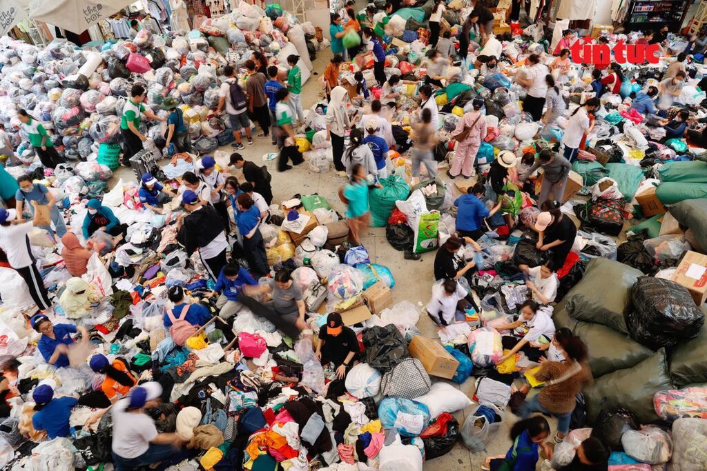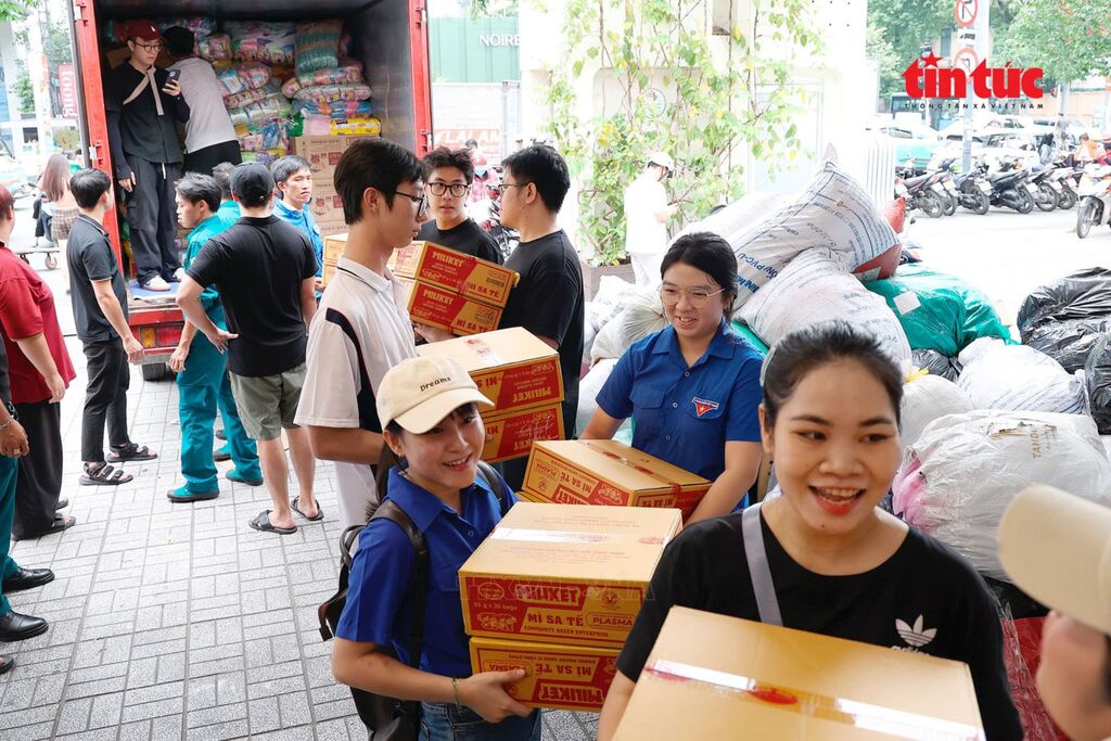 Hầu như những ngày qua, các điểm tiếp nhận hàng hoá trên địa bàn TP Hồ Chí Minh đều không ngủ. Tại Nhà văn hoá Thanh niên TP Hồ Chí Minh và Nhà văn hoá Sinh viên của Đại học quốc gia TP Hồ Chí Minh, hàng trăm tình nguyện viên xuyên đêm tiếp nhận và phân loại hàng hoá rồi xếp hàng lên xe, tranh thủ từng phút từng giây để các thùng hàng sớm lên đường về miền Trung thân yêu đang oằn mình trong cơn lũ dữ.