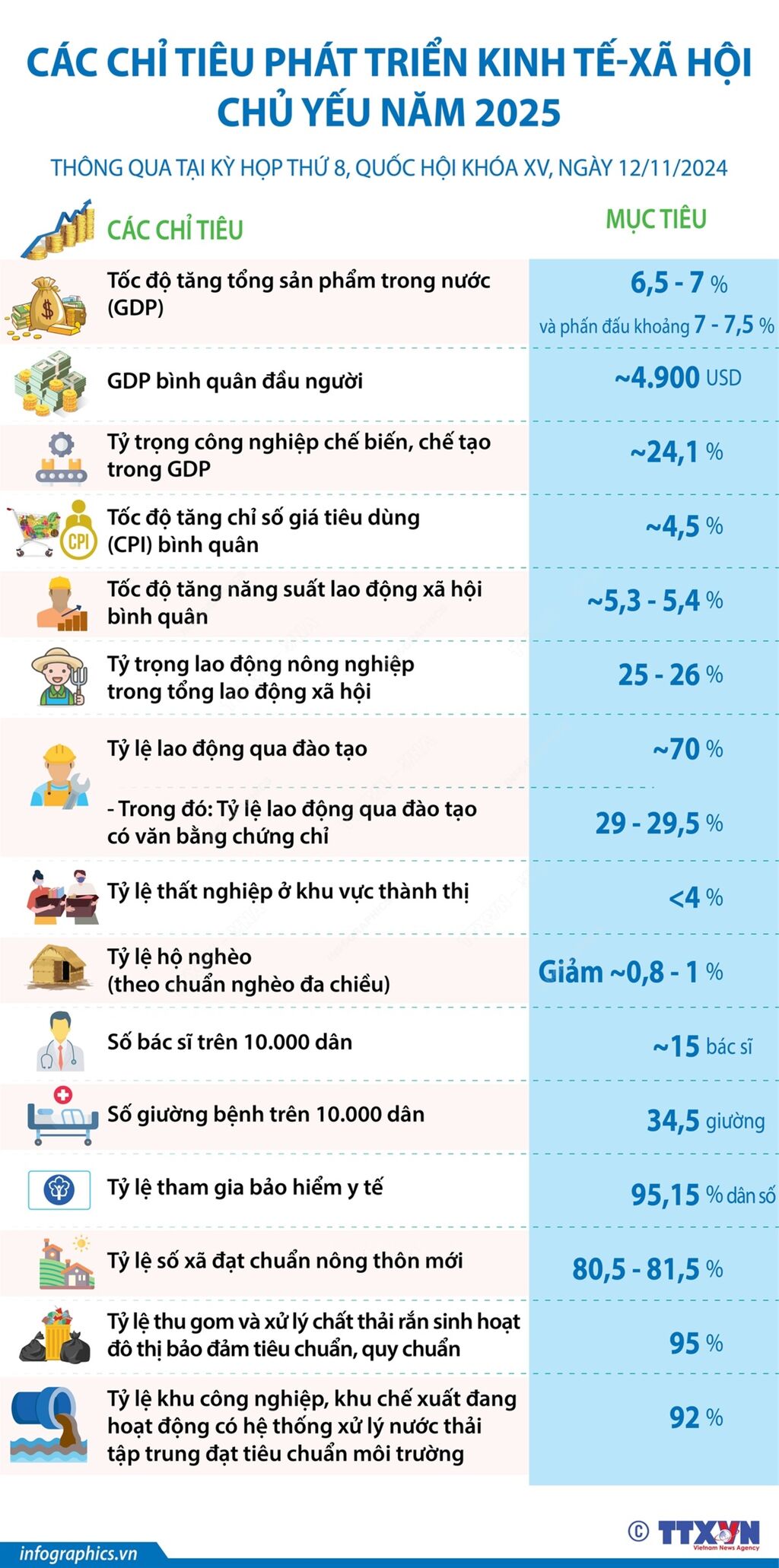 Các chỉ tiêu phát triển kinh tế-xã hội chủ yếu năm 2025