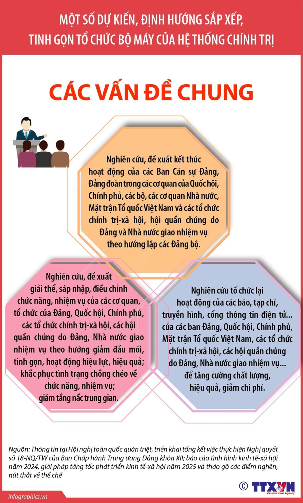 Sáng 1/12/2024, Bộ Chính trị, Ban Bí thư tổ chức Hội nghị toàn quốc quán triệt, triển khai tổng kết việc thực hiện Nghị quyết số 18-NQ/TW của Ban Chấp hành Trung ương Đảng khóa XII; tình hình kinh tế - xã hội năm 2024, giải pháp tăng tốc phát triển kinh tế - xã hội năm 2025 và tháo gỡ những điểm nghẽn, nút thắt về thể chế. Hội nghị đã nghe Ủy viên Bộ Chính trị, Bí thư Trung ương Đảng, Trưởng Ban Tổ chức Trung ương Lê Minh Hưng truyền đạt các nội dung chính, trọng tâm trong triển khai tổng kết Nghị quyết số 18-NQ/TW của Ban Chấp hành Trung ương Đảng khóa XII.