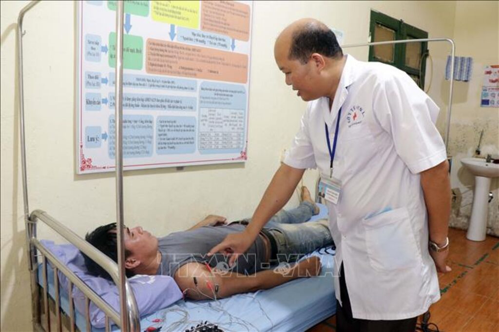 | Bác sĩ Bệnh viện Đa khoa huyện Mường La, tỉnh Sơn La, khám bệnh cho bệnh nhân có thẻ bảo hiểm y tế. |