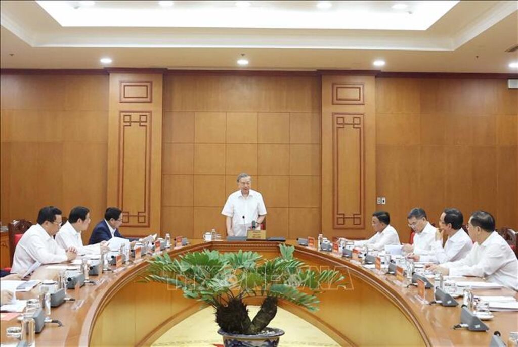 | Chiều 25/9/2025, tại Trụ sở Trung ương Đảng, Tổng Bí thư Tô Lâm làm việc với Thường trực các Tiểu ban Đại hội XIV của Đảng. Ảnh: Thống Nhất/TTXVN |