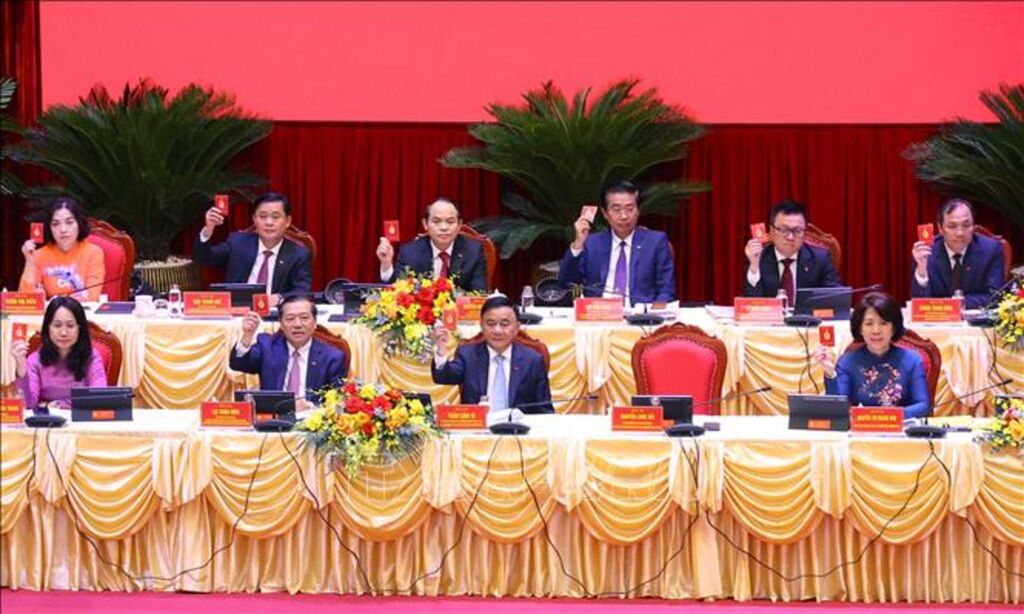 | Các đại biểu biểu quyết thông qua Nghị quyết Đại hội đại biểu Đảng bộ các cơ quan Đảng Trung ương lần thứ nhất, nhiệm kỳ 2025 – 2030. Ảnh: Văn Điệp/TTXVN |