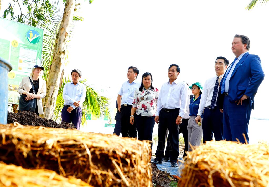 | Đại sứ Marc E. Knapper và thành viên Đại sứ quán Hoa Kỳ tại Việt Nam tham quan mô hình nông nghiệp tuần hoàn tại hoàn tại Hợp tác xã Tiến Thuận (huyện Vĩnh Thạnh). |