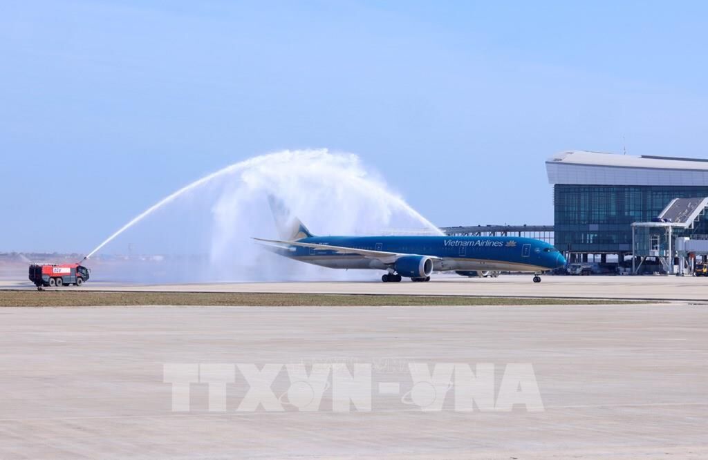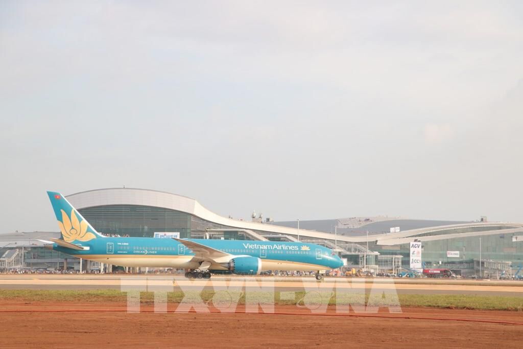 | Máy bay Boeing 787 Dreamliner mang số hiệu VN1 của Hãng hàng không quốc gia Việt Nam (Vietnam Airlines) hạ cánh xuống đường băng số 1 sân bay quốc tế Long Thành, sáng 19/12. |