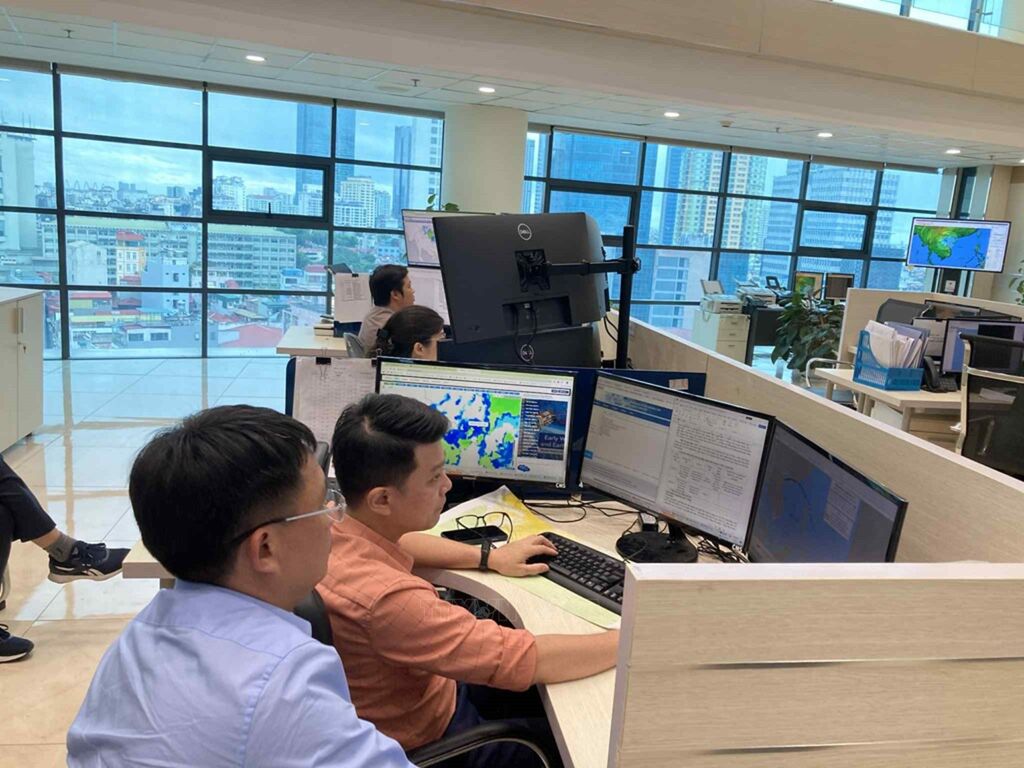 | Cán bộ khí tượng thuỷ văn đã luôn nỗ lực, ứng trực 24/24h. Ảnh: Thắng Trung/TTXVN |