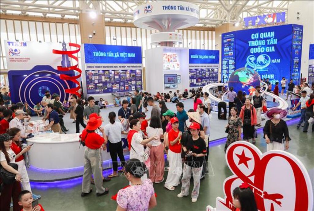 | Khu trưng bày của TTXVN tại Triển lãm thành tựu Đất nước thu hút khách tham quan. Ảnh: Thành Phương/TTXVN |
