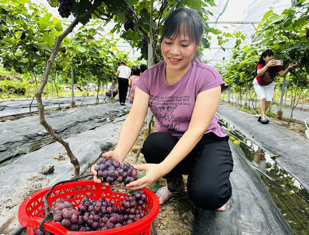 Mô hình trồng nho không chỉ giúp gia đình chị ổn định kinh tế mà còn tạo việc làm thường xuyên cho nhiều chị em trong thôn, góp phần thúc đẩy phát triển kinh tế hộ gia đình và địa phương. Không chỉ sản xuất, chị Hạnh còn chú trọng quảng bá hình ảnh vườn nho thông qua mạng xã hội như Facebook, Zalo. Nhờ đó, vườn nho trở thành điểm đến hấp dẫn, thu hút đông đảo du khách đến tham quan, chụp ảnh, trải nghiệm hái nho với giá vé 20.000 đồng/người.